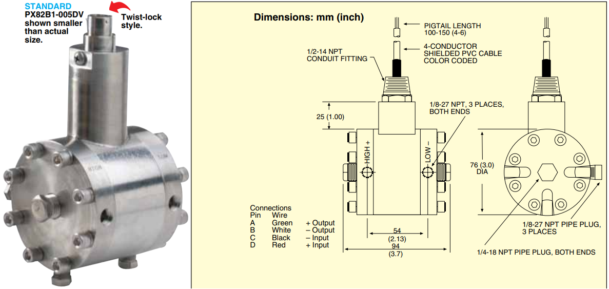 | PX82B0-800WCDV | PX82B1-800WCDV | PX82B6-800WCDV | 0 to 800 inHzO | 0 to 1993 mbar | DP41-S,DP25B-S |