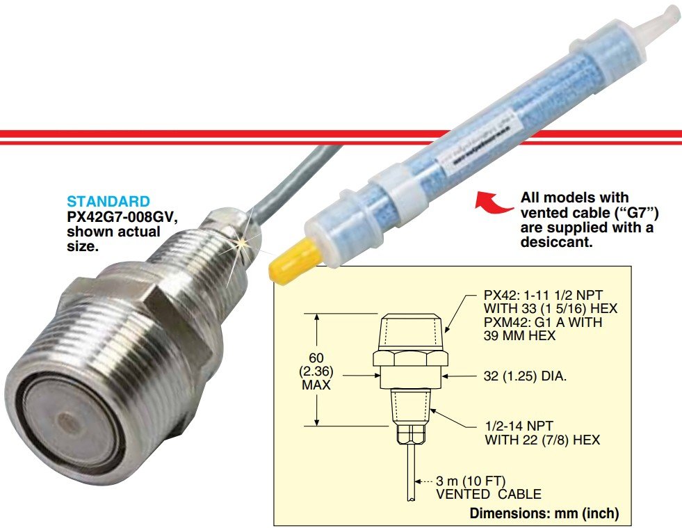 | PX42G7-008GV | 0 to 8 psig | 0 to 0.55 bar | DP41-S,DP25B-S,DPIS |