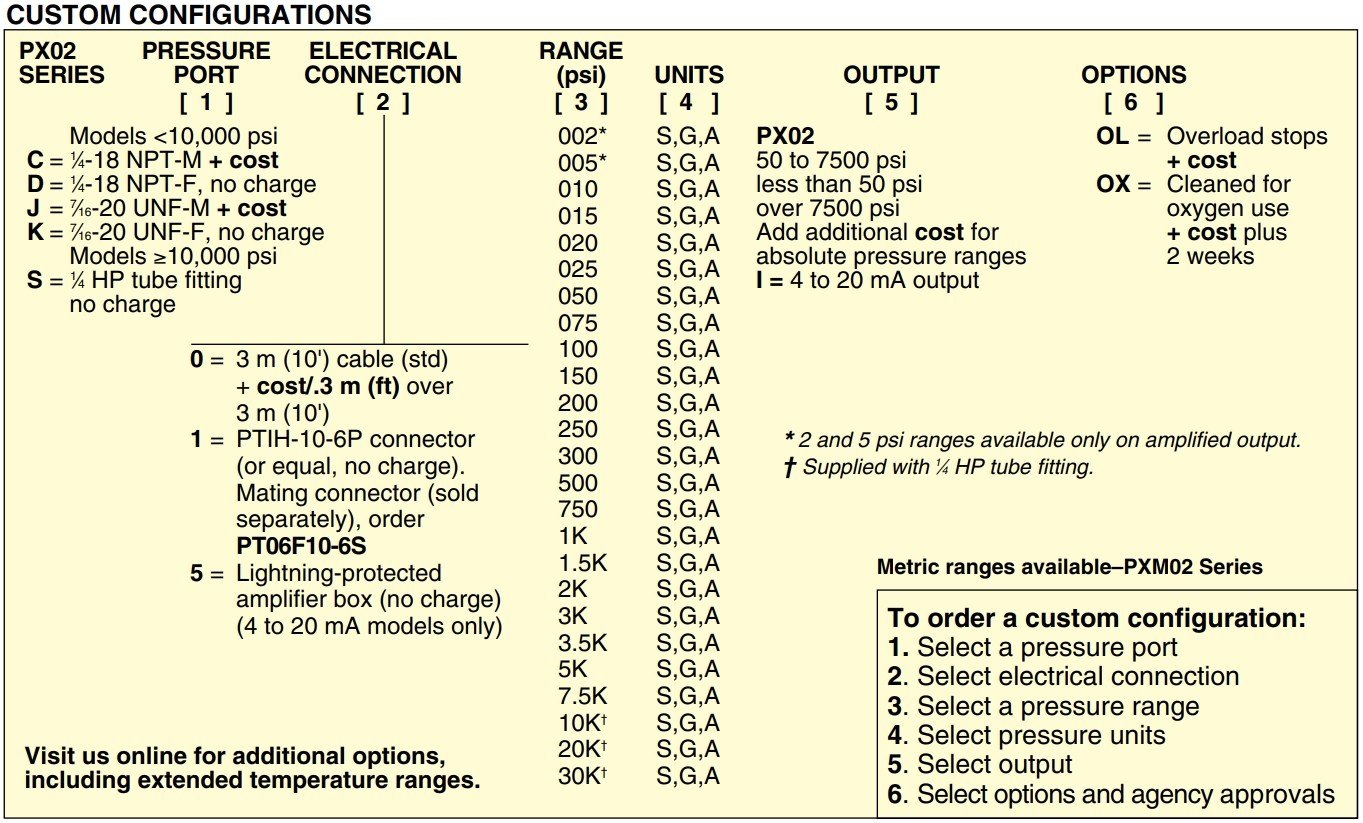 | PX02S5-30KGI | 0 to 30,000** psi | 0 to 2068 bar | DP41-E,DP25B-E*,DP24-E* |