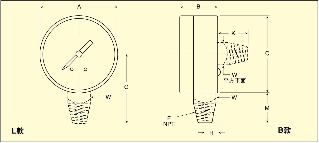 | 商用级压力表,2英寸表盘,¼ NPT下连接口 |