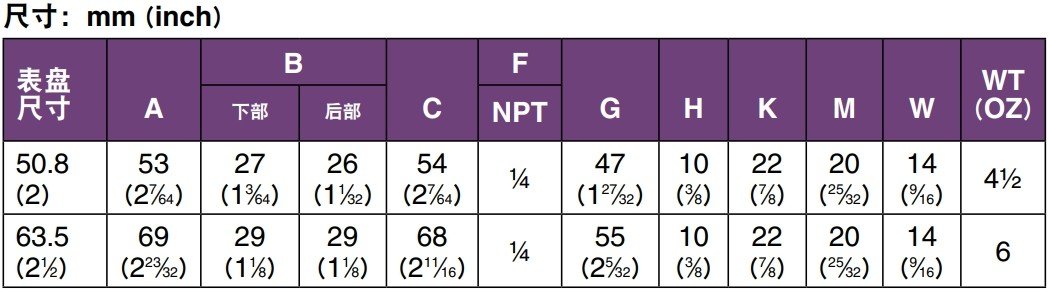 | 商用级压力表,2英寸表盘,¼ NPT后部接口 |