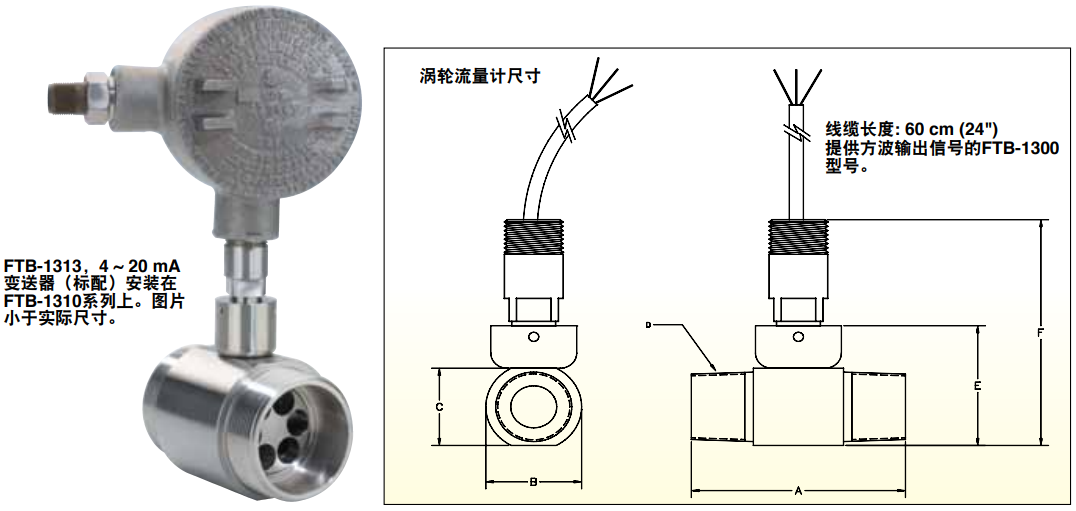 | FTB-1311 | 1/2 | 0.3~1.5 | 0.08~0.4 | 4~20mA电子元件 外壳(建议使用 FTB-1310-CONECTOR) |