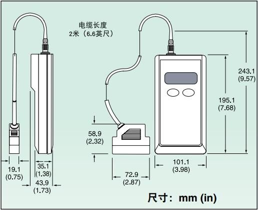 外壳等级/尺寸:NEMA 12X ABS塑料;200(长) x 100(宽) x 38 mm(高)(7.76 x 4 x 1.5")