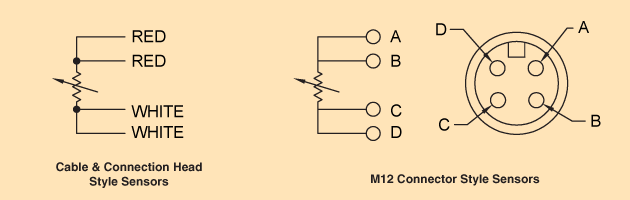 传感器输出为4线、100欧姆、A类、铂金RTD会议IEC 60751的要求。