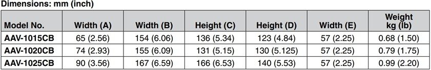 AAV-1015CB | 1/2 | 1/2" | 4.6 | 0 | 230(230) | 75to150 | 44(1.75) |